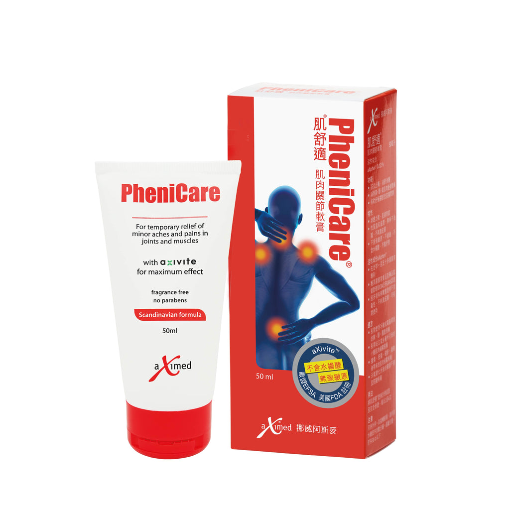 「肌舒適」® 肌肉關節軟膏是第一個含全球專利、歐盟EFSA註冊、美國FDA/GRAS認證成份aXivite™(苯基辣椒素/苯基唐辛子) 的外用消炎止痛膏,經多項的科學實驗證明有助阻截痛楚神經的傳遞(止痛)及具消炎作用。「肌舒適」能加促血液循環、有效消除疲勞、紓緩各種肌肉酸痛、肩頸疼痛、腰酸背痛。「肌舒適」的消炎作用有效改善風濕肌肉痛及各種關節疼痛。